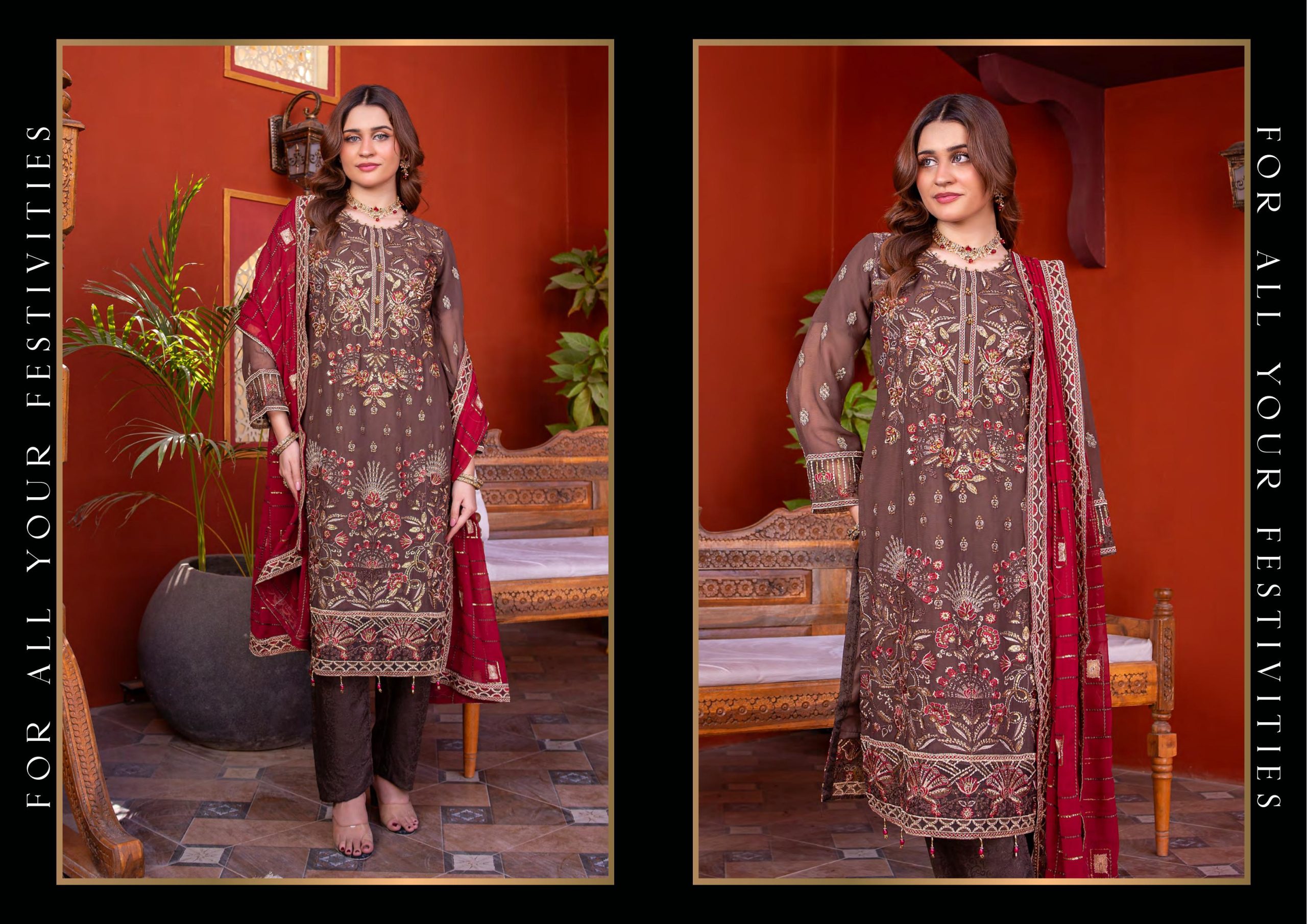 Exclusive Embroidered Fancy CHIFFON ORGANZA Duppata With Complete Embellishments.